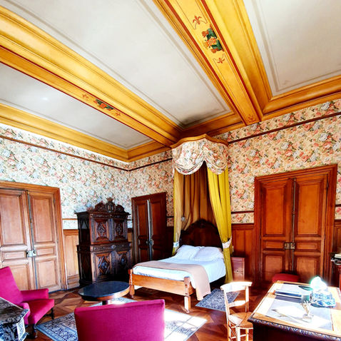 Cette suite familiale de deux chambres contiguës est très confortablement meublée (1 lit de 140cm/190cm et 2 lits de 90cm/190cm), elle permet de recevoir 2 adultes et 2 enfants. Situées au rez-de-chaussée, équipée d'une salle de bain commune, elle donne vue sur la vallée de la Dive.